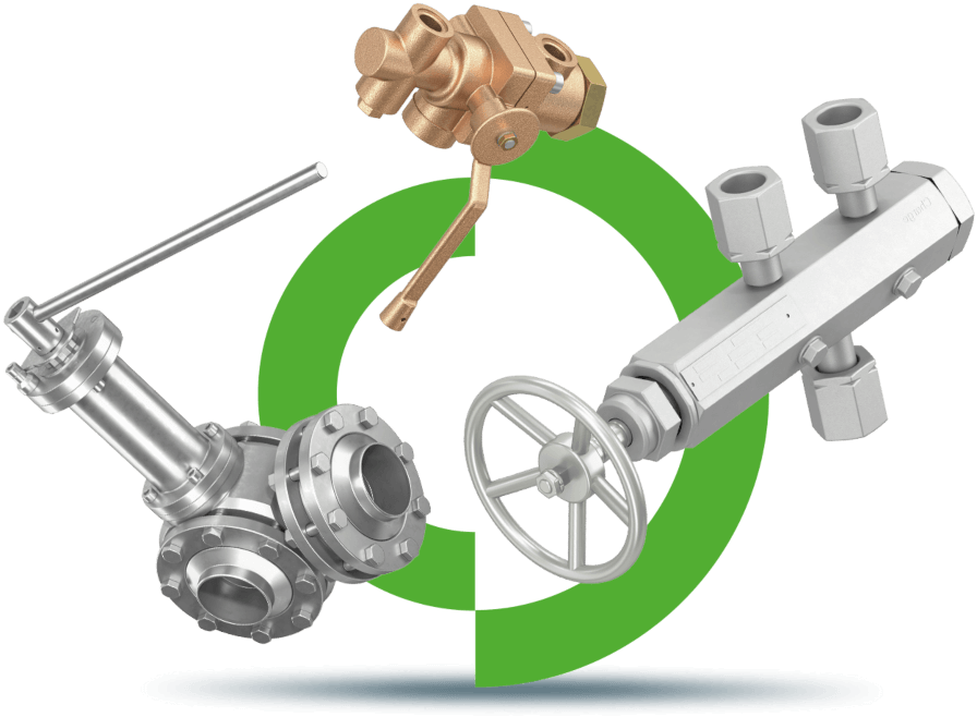 A high-pressure range of stainless steel cryogenic diverter valves for the installation of two safety valves and two bursting discs for various gas types, including hydrogen. Many connection options including flanged inlet.